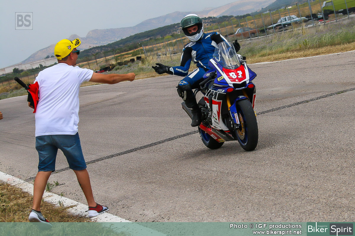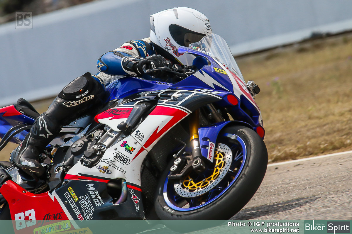 «Θα ήθελα να ευχαριστήσω την οικογένεια μου που είναι δίπλα μου, την Yamaha Μοτοδυναμική για την μοτοσικλέτα που μας έχει παραχώρησε, την απίστευτη Yamaha R1 που κάνει τα δύσκολα εύκολα από μόνη της με πολύ λίγες διαφορές από την stock μορφή της, τον Μάστορα που την φροντίζει που δεν είναι άλλος από τον Γιώργο Πιερράκο – Pierrakos Moto – τον Νίκο Περιστερά με τα Ελαστικά Dunlop πού κάνουν τους χρόνους να μοιάζουν εύκολο επίτευγμα, τον speedjunky για τα γραφικά τις μοτοσικλέτας, την ομάδα zenone πού ρυθμίζει τον εγκέφαλο της μοτοσικλέτας μου και τις μανέτες, μαρσπιέδες και τα λοιπά αξεσουάρ της, τον Άκη Γεωργόπουλο με τις ζελατίνες Earmax, τον Break Shop για τα φρένα, τον Γιάννη Τζωρτζόπουλο για τα καταπληκτικά Shoei, το Μοτοδύκτιο για τα Alpinestar, τον Νίκο Μουράτη – MouratisGP, τον φίλο μου και βοηθό μηχανικού Παναγιώτη Μπακαούκα, τον Θοδωρή και την Παναγιώτα που είναι δίπλα μου και με ανέχονται! και τέλος το περιοδικό Biker spirit που είναι δίπλα μας και μας στηρίζει σε αυτό που λέγεται μηχανοκίνητος αθλητισμός όσο και αν μπορούμε να το πούμε για την Ελλαδάρα μας αυτό!»