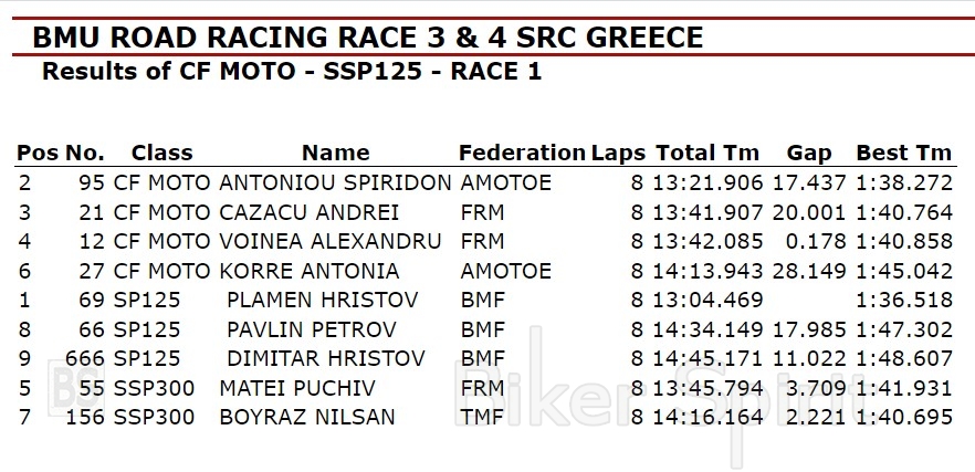ΑΠΟΤΕΛΕΣΜΑΤΑ ΑΓΩΝΑ CFMOTO