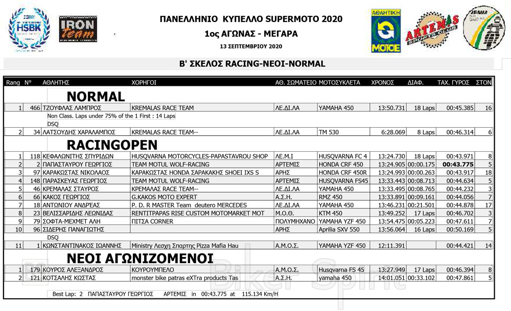 Ο Σπύρος Κεφαλλονίτης νικητής του 1ου Αγώνα Κυπέλλου SUPERMOTO 2020 στα Μέγαρα – ΑΠΟΤΕΛΕΣΜΑΤΑ – Φωτογραφίες