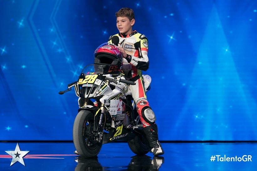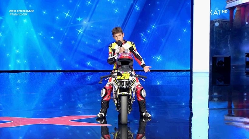 Ο Σπύρος Φουρθιώτης με την μοτοσυκλέτα του μια OHVALE 110 που συμμετείχε στο αντίστοιχο Ιταλικό πρωτάθλημα, ο μικρός Σπύρος έδειξε μερικά κόλπα , και ένα μικρό δείγμα των ικανοτήτων και του ταλέντου του , που εντυπωσίασε το κοινό αλλά και τους κριτές που του είπαν ναι για την επομένη φάση του διαγωνισμού.