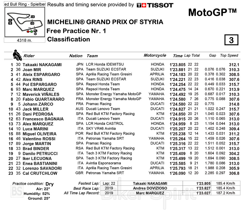 Ο Takaaki Nakagami ταχύτερος του FP1 στο Spielberg – Αποτελέσματα – Χρόνοι – StyrianGP