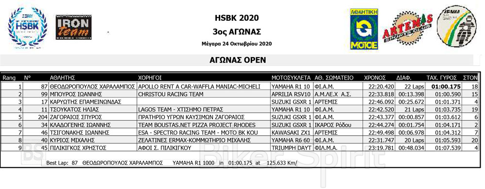 7ος τερμάτισε ο Γιάννης Τσιγονάκης, (KAWASAKI ZX10R), μπροστά από τον Μιχάλη Κύριο, (YAMAHA R6 600) ενώ στην 9η θέση τερμάτισε ο Χρήστος Πιλικιγκος (TRIUMPH DAYTONA)!