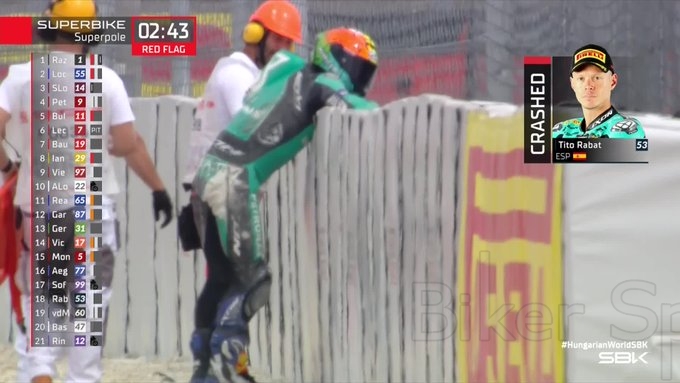 Απο το session δεν έλειψαν τα δράματα, καθώς ο Tito Rabat είχε μια βίαιη πτώση στη Κ9 που έφερε την κόκκινη σημαία, ενώ και ο Alex Lowes έπεσε στη Κ1 πριν από τη διακοπή. Ευτυχώς και οι δύο είναι καλά, με τον Rabat να μεταφέρεται προληπτικά στο ιατρικό κέντρο για εξετάσεις. Η κόκκινη σημαία αποδείχθηκε σωτήρια για τον Alex Lowes, ο οποίος πρόλαβε να επιστρέψει για έναν τελευταίο γρήγορο γύρο, μένοντας όμως τελικά στη 10η θέση μετά απο άλλη μια πτώση.