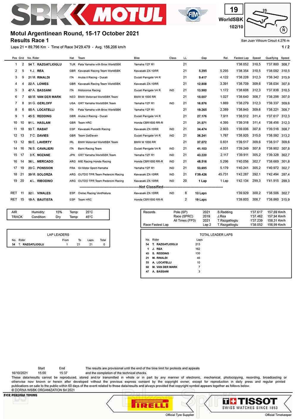 Ο Ραζγκατλιόγλου και ο Τζόναθαν Ρέα (Kawasaki Racing Team WorldSBK), παρόλο που ξεκίνησαν από την 2 και 5η θέση, έστριψαν 1ος και 2ος μένοντας στην ορυχή μέχρι το τέλος του αγώνα!