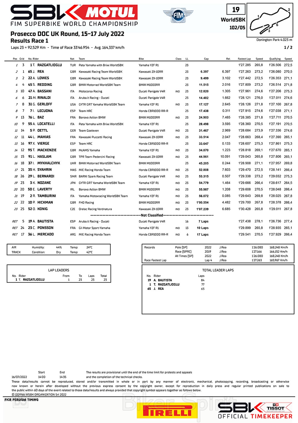 O Toprak Razgatlioglu κέρδισε τον 1ο αγώνα στο Donington – Αποτελέσματα – Η Kawasaki το 2-3 , Πτώση του Bautista