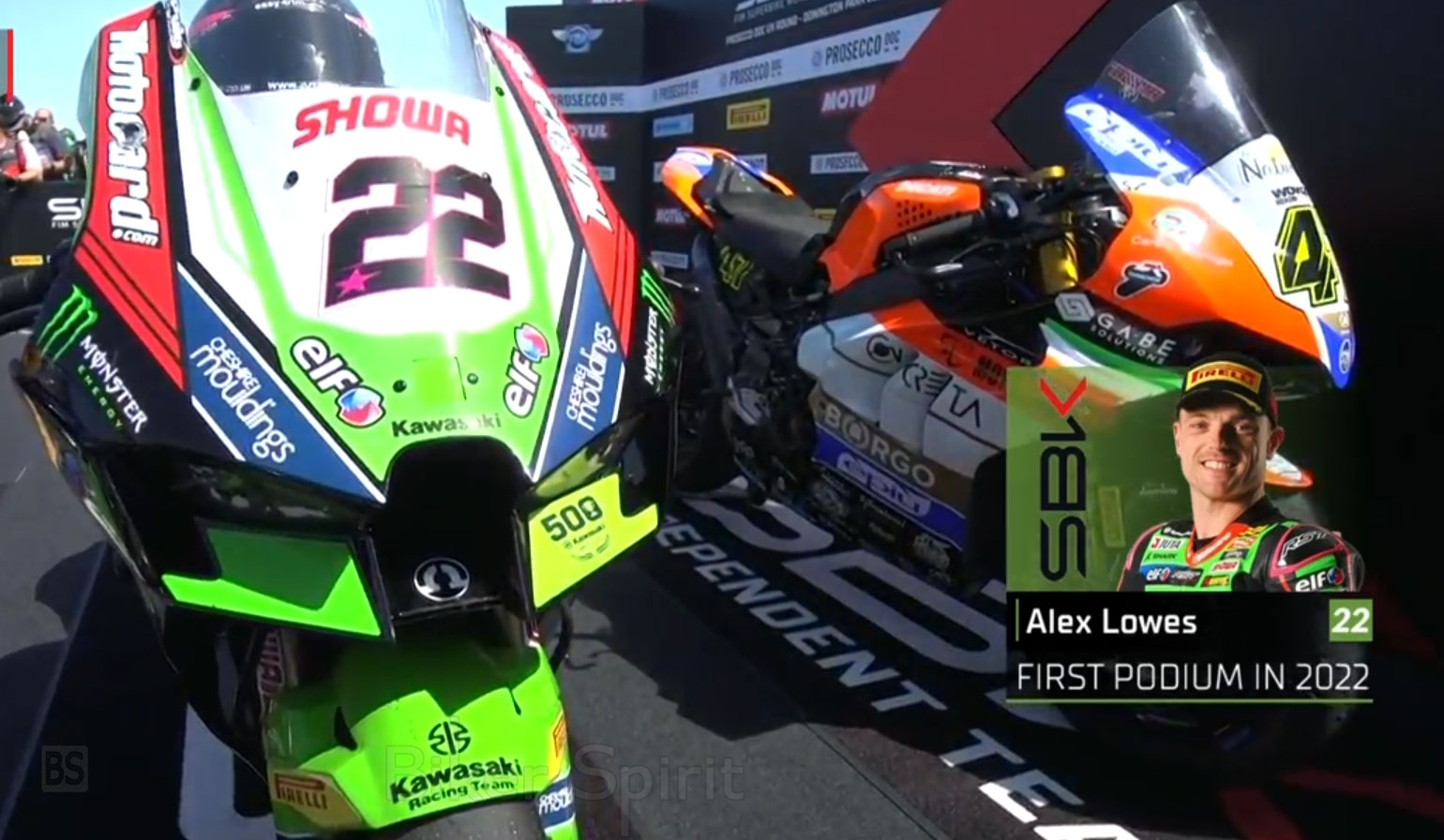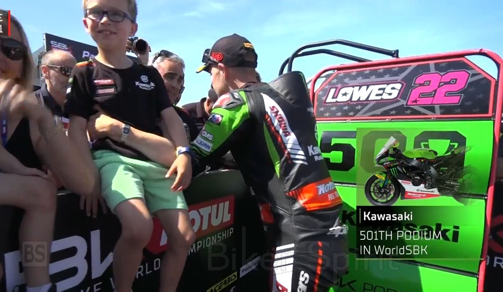 Η Kawasaki έκανε το 2-3 με τον Jonathan Rea και τον Alex Lowes να κλείνουν το βάθρο στην 2η και 3η θέση αντίστοιχα δίνοντας φοβερές μάχες και οι δυο για αυτές τις θέσεις! Με αυτό το διπλό βάθρο η Kawasaki ξεπέρασε το ορόσημο των 500 βάθρων φτάνοντας στα 501!
