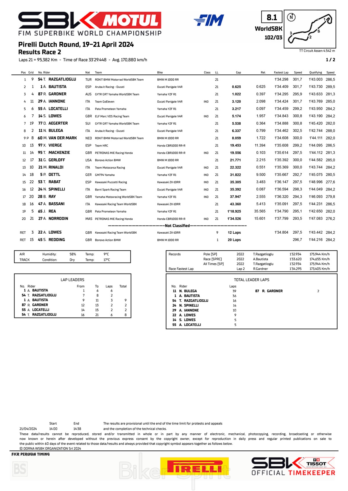 Ο Toprak Razgatlioglu κέρδισε τον θεαματικό 2ο αγώνα στο Assen – Bautista και Gardner στο βάθρο – Αποτελέσματα