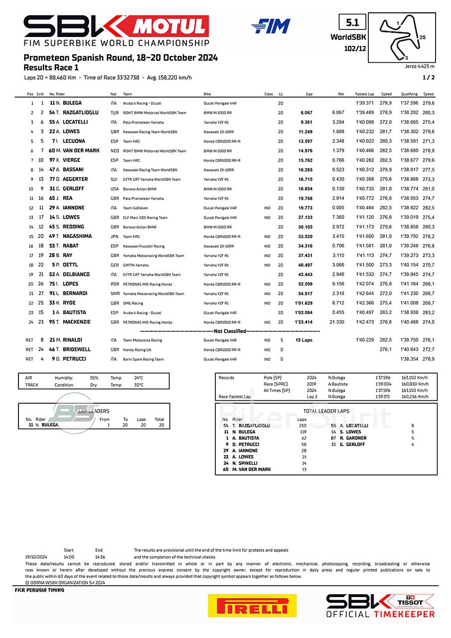 Ο Nicolò Bulega κέρδισε τον 1ο αγώνα στην Jerez, ενώ ο Toprak Razgatlioglu έγινε Παγκόσμιος Πρωταθλητής 2024 με την BMW