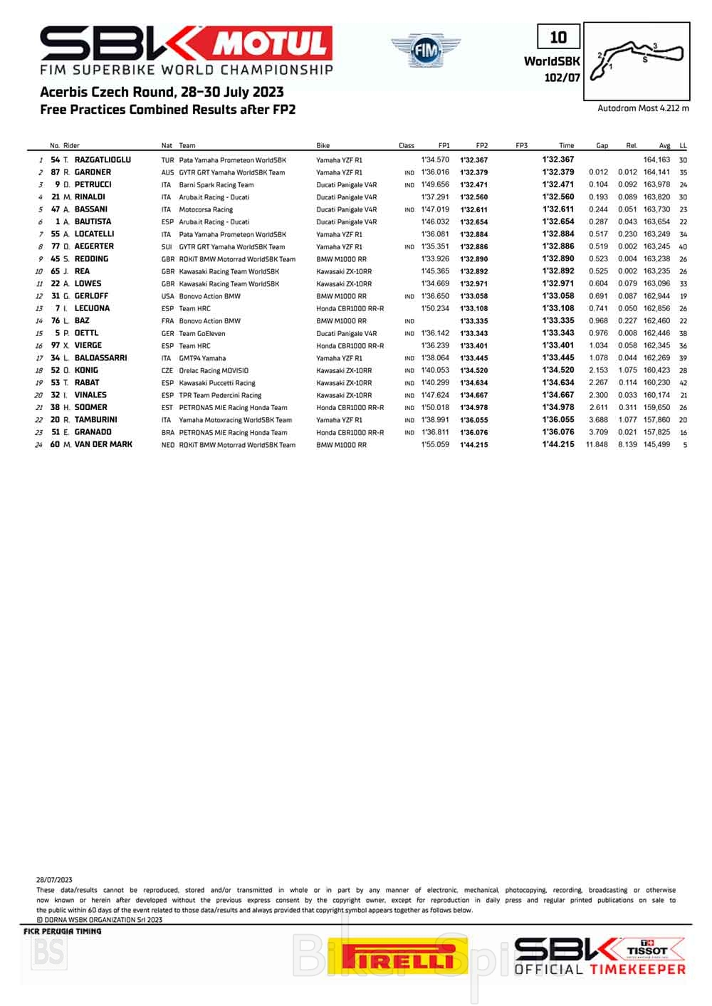 Ο αναβάτης της Yamaha σημείωσε τον καλύτερο γύρο με χρόνο 1’32.367, που έκανε στο FP2, ενώ χρόνο που τον έφερε μπροστά από τον Remy Gardner, Team GYTR GRT, με διαφορά μόλις 12 χιλιοστά.