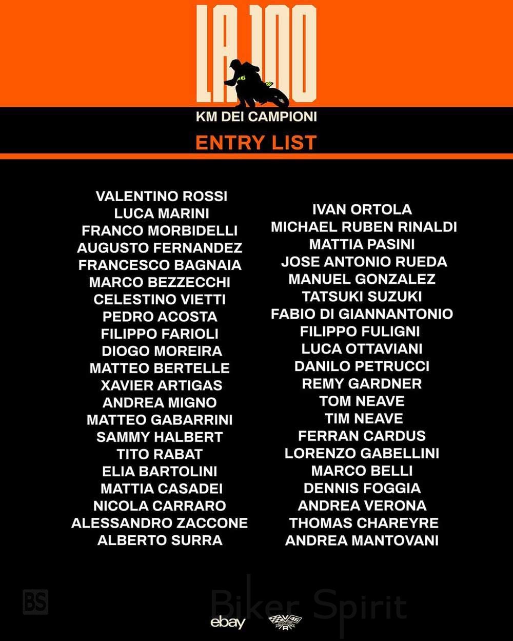 Η λίστα των συμμετεχόντων εξακολουθεί να είναι κορυφαίας κατηγορίας – με επικεφαλής, φυσικά, τους άσους του GP από την VR46 Riders Academy. Εκτός από τον μέντορα Rossi και τον Marini, δεν θα λείπουν ο δυο φορές παγκόσμιος πρωταθλητής MotoGP, Pecco Bagnaia, ο Marco Bezzecchi, ο Franco Morbidelli και ο Celestino Vietti. Μαζί τους ο Fabio Di Giannantonio ως νέα προσθήκη στην Pertamina Enduro VR46 Racing Team και ορισμένοι καλεσμένοι όπως ο Augusto Fernández, ο Pedro Acosta, ο Manuel Gonzalez, ο Diogo Moreira και ο Ivan Ortolá.