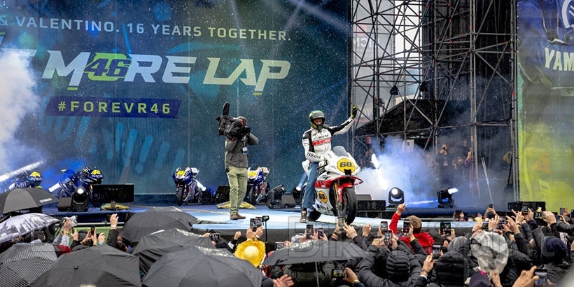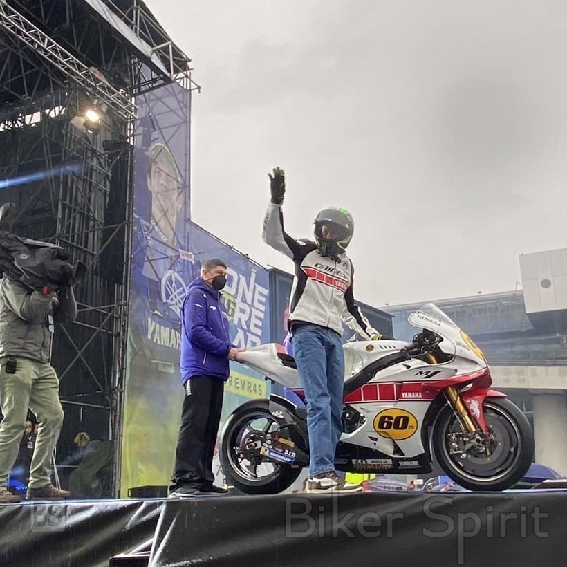 Ο 42χρονος MotoGP Legend και 9 φορές παγκόσμιος πρωταθλητής, ενθουσίασε το πλήθος των 9.000 θεατών που είχε κατακλίσει την MotoLive Arena και αποθεώθηκε όταν βγήκε στην σκηνή πάνω σε μια Yamaha M1 βαμμένη με τα χρώματα για την 60η επέτειο της Yamaha.