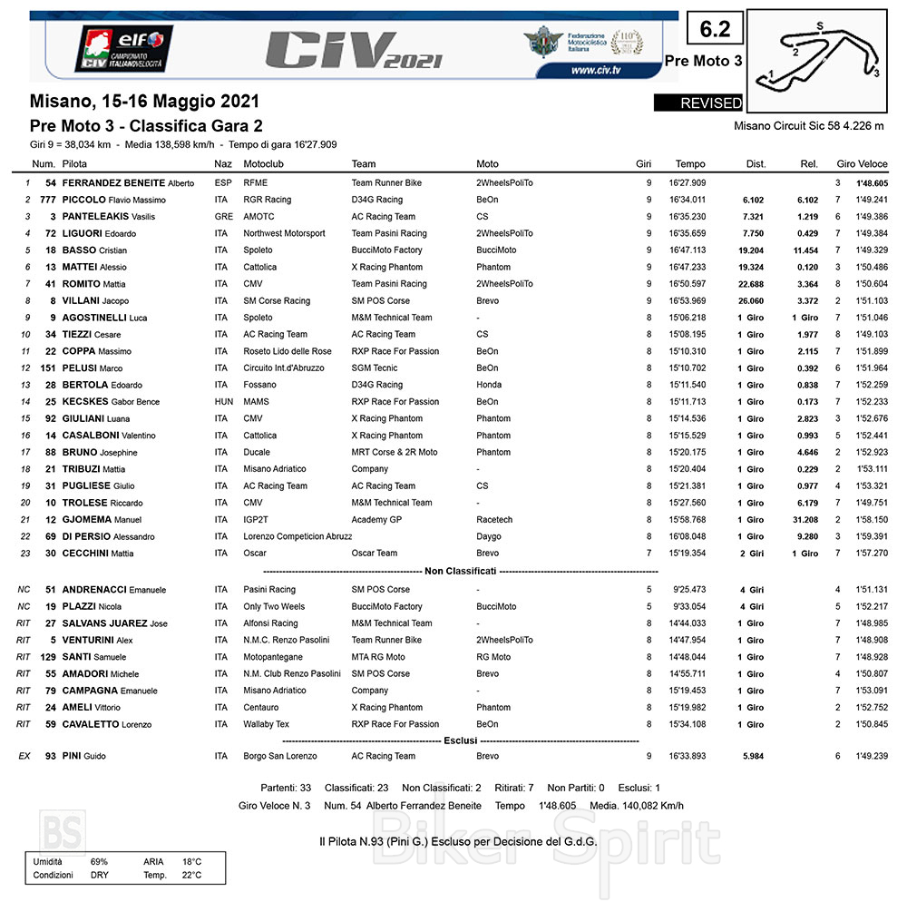 Ο Βασίλης Παντελεάκης που αγωνίζεται για δεύτερη χρονιά στην PreMoto3 του Ιταλικού Πρωταθλήματος CIV, αυτό το Σαββατοκύριακο αγωνίστηκε στην πίστα του Misano για τον 2ο γυρο της σεζόν, με έναν ακόμα διπλό αγώνα!