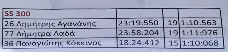 Στην κατηγορία SS300 τον αγώνα κέρδισε ο Δημήτρης Αγανάνης, μπροστά από την Δήμητρα Λαδά. Ο Παναγιώτης Κόκκινος κατατάχτηκε 3ος