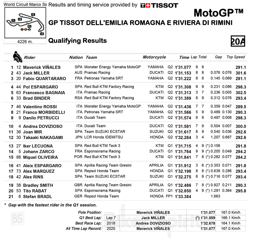 Σε μια φοβερή περίοδο Q2 είδαμε μια φοβερή μάχη για την pole position, με τελικό νικητή τον Maverick Vinales που με χρόνο 1.31.077, έσπασε το ρεκόρ πίστας που είχε κάνει το πρωί στο FP3 ο Pecco Bagnaia.