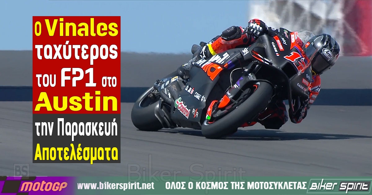 O Maverick Vinales με την Aprilia του ήταν ο ταχύτερος στο FP1 την Παρασκευή στο Austin, που άνοιξε τον 3ο γύρο του 2024 για την μεγάλη κατηγορία MotoGP.