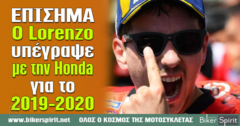 … Continue reading ΕΠΙΣΗΜΑ ο Jorge Lorenzo υπέγραψε με την Honda για το 2019-2020