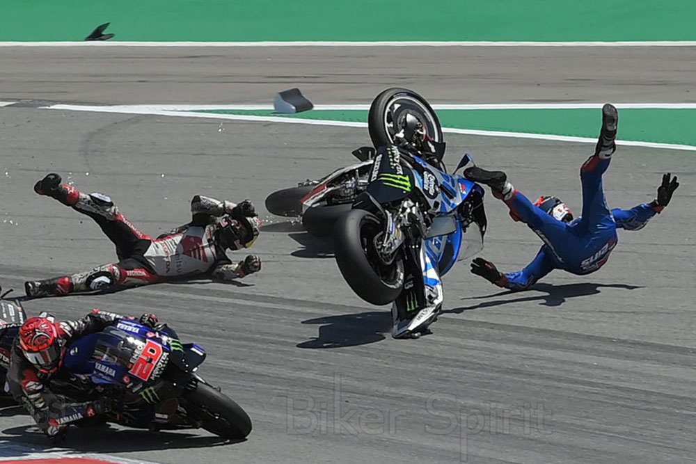 «Οι αγωνοδίκες της FIM MotoGP εξέτασαν το περιστατικό της στροφής 1 μεταξύ των αναβατών Takaaki Nakagami , Alex Rins και Francesco Bagnaia από κάθε οπτική γωνία. Με βάση τα στοιχεία που παρέχονται από το πλήθος των γωνιών που είχαν στη διάθεσή τους οι αγωνοδίκες, συμπεριλαμβανομένου των πλάνων από το ελικόπτερο, κρίθηκε ως ένα αγωνιστικό συμβάν χωρίς να ληφθούν περαιτέρω μέτρα.