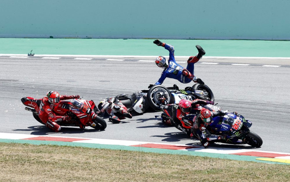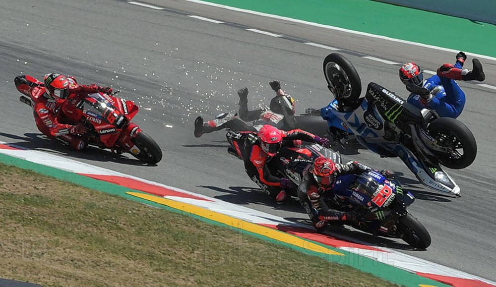 It all went wrong at Turn 1 in the #MotoGP race 💥#CatalanGP 🏁 pic.twitter.com/kJwlWM0yIE