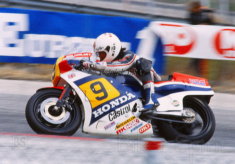 Ο Haslam αγωνίστηκε στα 500cc από το 1977 έως το 1993. Η καλύτερη περίοδος του ήταν από το 1983 έως το 1987 με τη Honda. Η πρώτη χρονιά ξεκίνησε πολύ καλά με δύο τρίτες θέσεις στη Νότια Αφρική και τη Γαλλία. Επίσης, πέτυχε δύο βάθρα με το NS500 το 1984, αλλά στο τέλος της σεζόν. Τρία βάθρα το 1985, όταν τερμάτισε πέμπτος στο NSR500. Τα τελευταία 2 βάθρα το 1987 με το Elf-Honda. Συνολικά κέρδισε μια δεύτερη θέση και 8 τρίτες θέσεις.