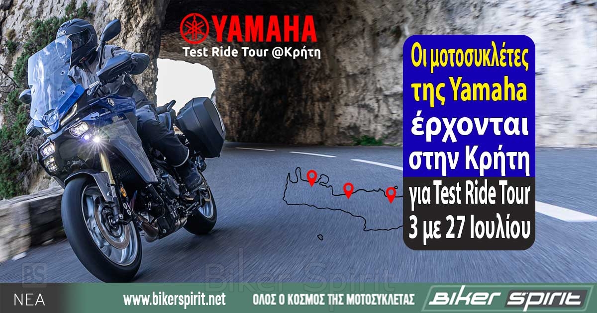 Η Yamaha, μέλος του Ομίλου ΜΟΤΟΔΥΝΑΜΙΚΗ έρχεται στην Κρήτη για ένα καλοκαιρινό Test Ride Tour, δίνοντας την ευκαιρία στους λάτρεις των 2 τροχών να γνωρίσουν από κοντά και να οδηγήσουν τα νέα κορυφαία Sport Touring και Hyper Naked μοντέλα της μάρκας.