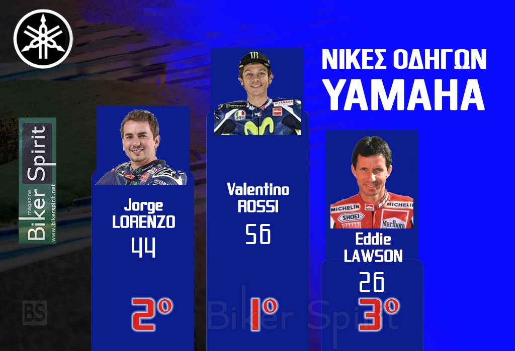 Στη Yamaha , δεν υπάρχει αμφιβολία ποιος ήταν ο αναβάτης με τις περισσότερες νίκες: ο Valentino Rossi . Αν και ο Ιταλός εμφανίζεται συνοδευόμενος σε αυτή τη λίστα από ονόματα όπως οι Kenny Roberts, Eddie Lawson, Wayne Rainey, Jorge Lorenzo ή, πιο πρόσφατα, Maverick Viñales, Fabio Quartararo και Franco Morbidelli , η αλήθεια είναι ότι κατάφεραν να κάνουν λίγα πράγματα πριν από την σπρώξιμο του ‘Il Dottore’.