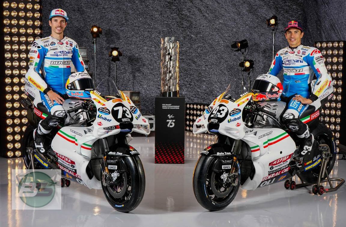Η Gresini παρουσίασε ένα αντίγραφο του λευκού χρώματος με το οποίο ο αείμνηστος ιδιοκτήτης της ομάδας, Fausto Gresini κέρδισε τους τίτλους των 125cc το 1985 και το ’87, με μια από τις πρώην μοτοσυκλέτες του να εκτίθεται επίσης στο pitlane.