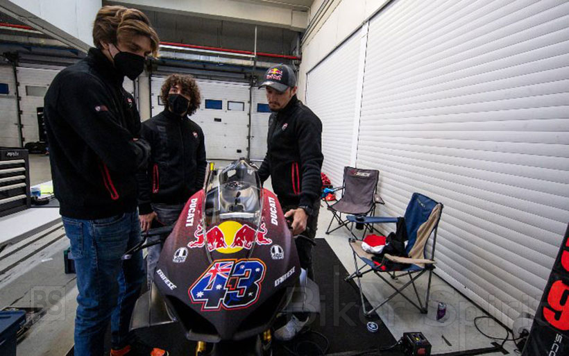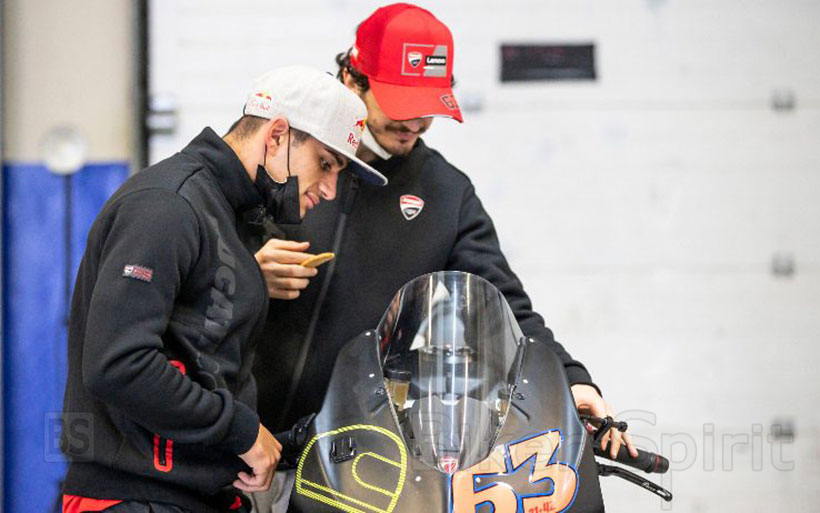 Δύο ημέρες ιδιωτικών δοκιμών στην Jerez για την Ducati, μια ξεχωριστή ευκαιρία για την ενίσχυση της ενότητας της ομάδας. Από αριστερά προς τα δεξιά: Bastianini, Martin, Bagnaia, Pirro, Miller, Zarco, Marini. Ο οδηγός δοκιμών Pirro ήταν επιφορτισμένος με την πρώτη δοκιμή του GP21 της χρονιάς, οι άλλοι (οι οποίοι, λόγω των κανονισμών, μπορούσαν να δοκιμάσουν μόνο μια μοτοσυκλέτα παραγωγής, οδήγησαν το Ducati Panigale V4S.