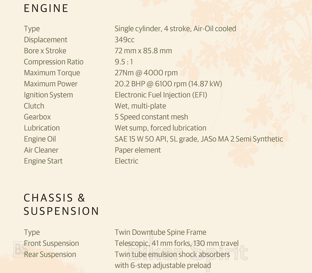 H Classic 350 χρησιμοποιεί τον αερο/ελαιόψυκτο κινητήρα 349cc που πρόσφατα λανσαρίστηκε μαζί με το Meteor 350. Είναι ένας υπερσύγχρονος μονοκύλινδρος με πολύ υψηλό επίπεδο άνεσης, ομαλότατη λειτουργεία και εξαιρετική εμφάνιση. Στην Classic 350 αποδίδει απόλυτα γραμμικά 20.2 bhp στις 6100σ.α.λ και 27Nm ροπής στις 4000σ.α.λ., με το μεγαλύτερο μέρος της να είναι διαθέσιμο από τις πολύ χαμηλές στροφές έως το όριο περιστροφής του κινητήρα.