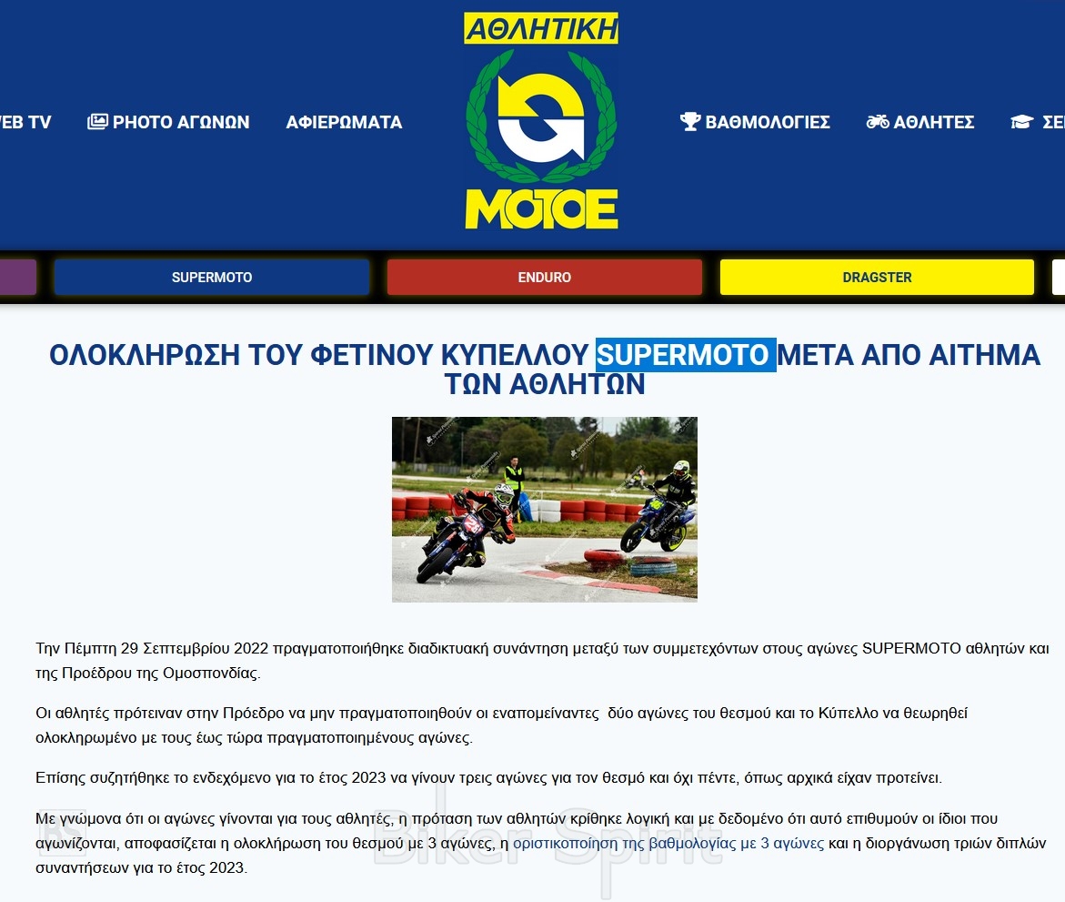 ΟΛΟΚΛΗΡΩΣΗ ΤΟΥ ΦΕΤΙΝΟΥ ΚΥΠΕΛΛΟΥ SUPERMOTO ΜΕΤΑ ΑΠΟ ΑΙΤΗΜΑ ΤΩΝ ΑΘΛΗΤΩΝ