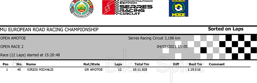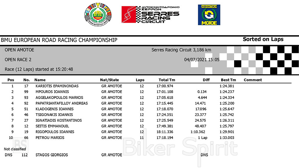 Στην 7η θέση τερμάτισε ο Κώστας Ιγνατιάδης (BMW HP4 1000), μπροστά από τον Μανό Σεΐτη (YAMAHA R1)