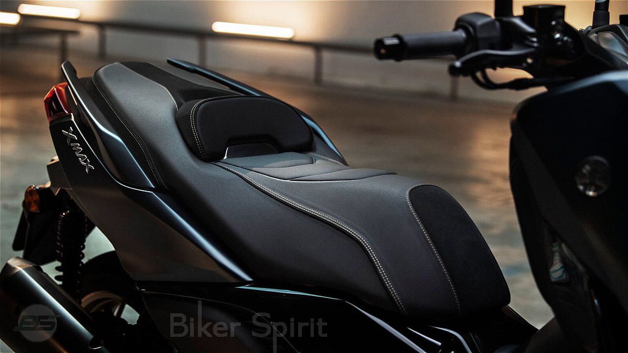 Η σέλα του νέου XMAX 300 Tech MAX ανασχεδιάστηκε, για πιο άνετη οδήγηση και εύκολη πρόσβαση των ποδιών στο έδαφος. Το σχήμα του μπροστινού μέρους της σέλας έχει αναθεωρηθεί, για να γίνει πιο ευχάριστη η οδήγηση στην κίνηση, όπου απαιτούνται συχνές στάσεις και εκκινήσεις.