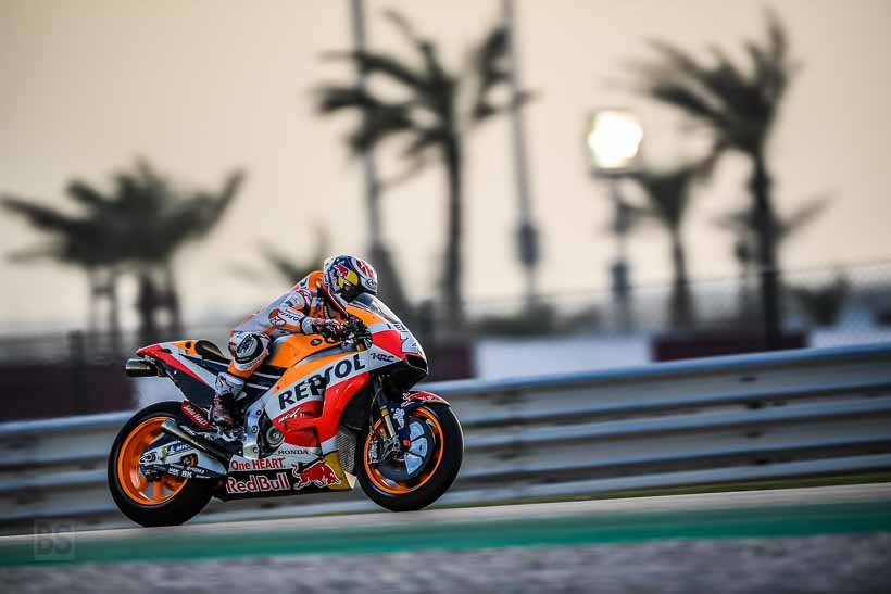 Η δεύτερη ημέρα δοκιμών στο Κατάρ σηματοδοτήθηκε από θερμοκρασίες ελαφρώς πιο δροσερές από ό, τι την προηγούμενη ημέρα,με μερικές σταγόνες βροχής να πέφτουν στη πίστα το μεσημέρι. Τόσο ο Marc Marquez όσο και ο Dani Pedrosa βγήκαν στην πίστα γύρω στις 4 μ.μ.