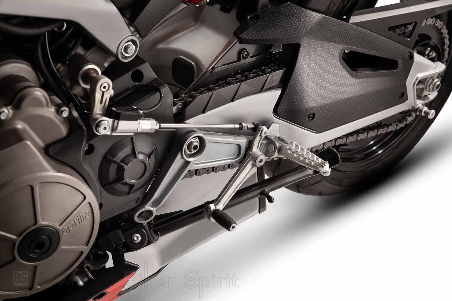 – AQS: Aprilia Quick Shift, το ηλεκτρονικό κιβώτιο ταχυτήτων, για αλλαγές σε υψηλή ταχύτητα με ανοικτό γκάζι και χωρίς χρήση της μανέτας του συμπλέκτη. Διαθέτει επίσης, λειτουργία κατεβάσματος ταχυτήτων (downshift) που επιτρέπει κατεβάσματα σχέσεων χωρίς χρήση της μανέτας συμπλέκτη. Χάρη στο λογισμικό που παρέχεται στον προαιρετικό εξοπλισμό, είναι δυνατή η αναστροφή του κιβωτίου για χρήση σε πίστα, χωρίς να απαιτείται αντικατάσταση οποιουδήποτε εξαρτήματος.