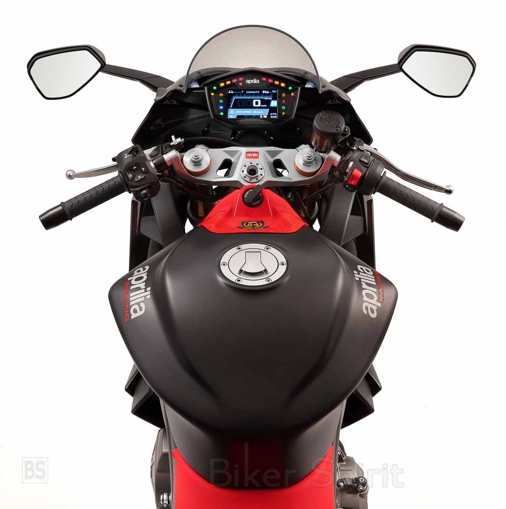 Η πλήρως έγχρωμη οθόνη TFT έχει εξαιρετικές δυνατότητες προβολής των διαφόρων παραμέτρων. Τα δύο κατά επιλογή μενού οθόνης Road και Track (και τα δύο με αυτόματο οπίσθιο φωτισμό για την ημέρα και τη νύχτα, χάρη στον αισθητήρα φωτός) αντιστοιχούν στον ίδιο αριθμό εμφανιζόμενων ενδείξεων. Μια επιπλέον επιλογή είναι η Aprilia MIA, η πλατφόρμα πολυμέσων της Aprilia που επιτρέπει τη σύνδεση smartphone στη μοτοσυκλέτα, επεκτείνοντας περαιτέρω το εύρος λειτουργιών των οργάνων. Το σύστημα Aprilia MIA προσφέρει ένα πρωτόκολλο σύνδεσης που ελαχιστοποιεί την κατανάλωση ενέργειας της μπαταρίας και περιλαμβάνει το σύστημα infotainment που διαχειρίζεται φωνητικές εντολές, τηλεφωνικές κλήσεις και μουσική μέσω των χειριστηρίων που βρίσκονται στο τιμόνι, καθώς και τη λειτουργία πλοήγησης. Είναι λοιπόν δυνατό, μόλις εισαχθεί ένας προορισμός στο smartphone, να προβληθούν οι οδηγίες απευθείας στην οθόνη της μοτοσυκλέτας. Η εφαρμογή Aprilia MIA επιτρέπει επίσης, την αποθήκευση των διαδρομών που έχουν γίνει και τα δεδομένα που έχουν συλλεχθεί μέσω της τηλεμετρίας γεω-αναφοράς μπορούν στη συνέχεια να αναλυθούν απευθείας, μέσω της εφαρμογής.