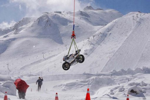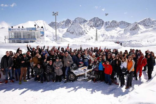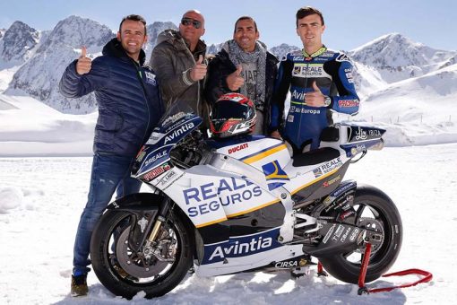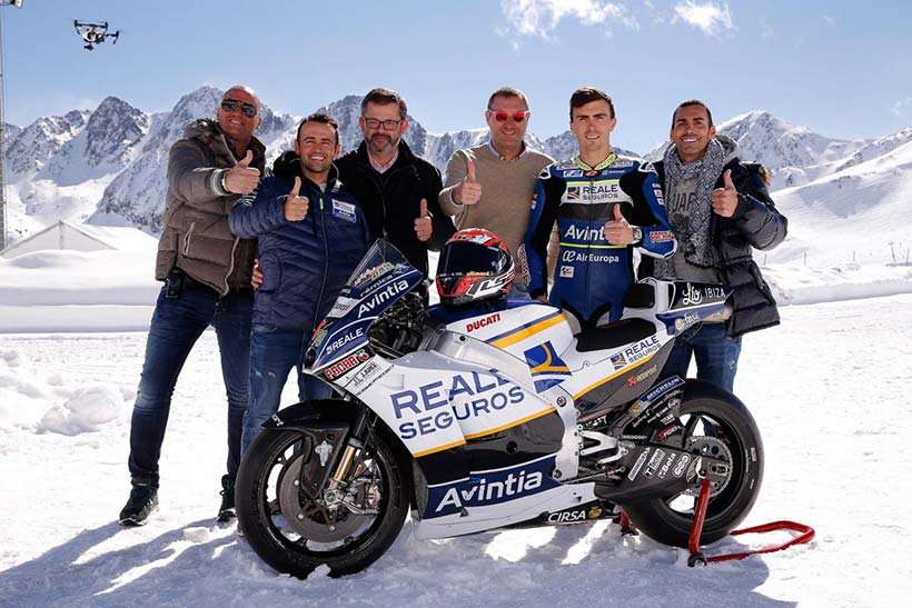 Η μοτοσυκλέτα της Reale Avintia Ducati έφτασε με ελικόπτερο μέχρι το χώρο, που βρίσκεται σε υψόμετρο 2500μ. Ο Emilio Zamora, αναβάτης της Stunt Team Ducati, κατάφερε να ξεγελάσει για λίγο το πλήθος που το έκανε να νομίζει πως οδηγούσε στο χιόνι ο τραυματισμένος Hector Barbera!