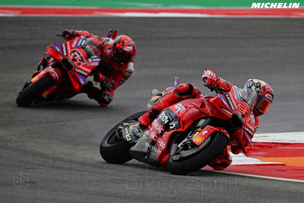 Ολοκληρώνοντας τις δηλώσεις του, ο Pecco Bagnaia τονίζει ότι τα πηγαίνει πολύ καλά με το “93”, καθώς άλλοι περίμεναν μια έντονη αντιπαλότητα, και καταλήγει: «Αυτή τη στιγμή κάνουμε σπουδαία ομαδική δουλειά και προσπαθούμε να βρούμε μαζί τον τρόπο να βελτιωθούμε κατά τη διάρκεια του Σαββατοκύριακου. Ο Marc έχει σίγουρα προσαρμοστεί τέλεια στη στρατηγική της ομάδας και το κλίμα εξακολουθεί να είναι καλό. Τόσο το καλύτερο. Δεν του είχα μιλήσει ποτέ πριν και χαίρομαι που τον γνώρισα και που μπόρεσα να δω πώς η σχέση μας μπορεί να είναι καλή.»