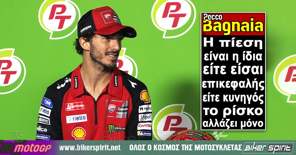 Pecco Bagnaia: “Η πίεση είναι η ίδια είτε είσαι επικεφαλής είτε κυνηγός, το ρίσκο αλλάζει μόνο”