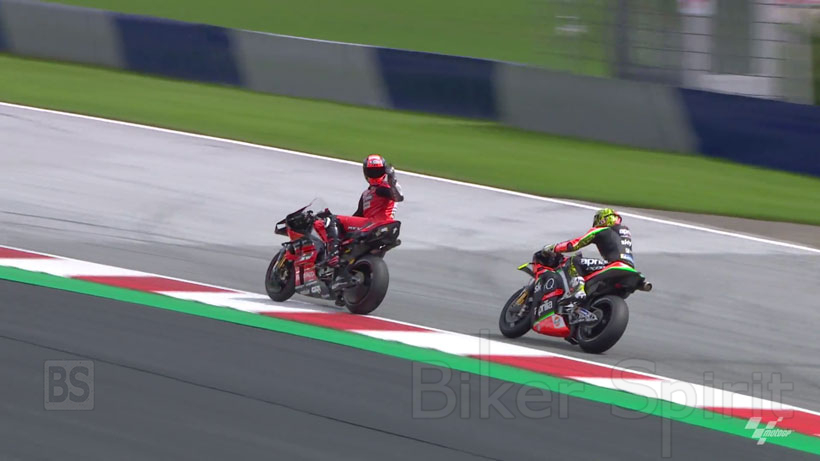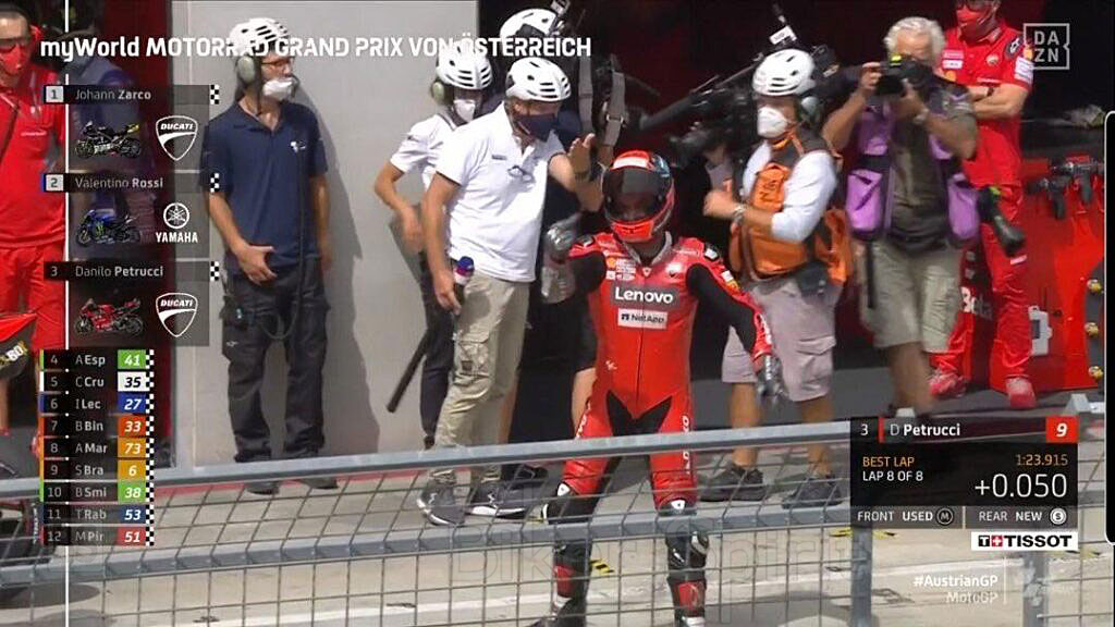 Ο Petrucci, όταν έφτασε στο pit lane, απευθύνθηκε στον Ισπανό με μια χειρονομία (την γνωστή με το μεσαίο δάκτυλο), μια ενέργεια που θα μπορούσε να τιμωρηθεί και που πυροδότησε υπέροχα σχόλια στα κοινωνικά δίκτυα.