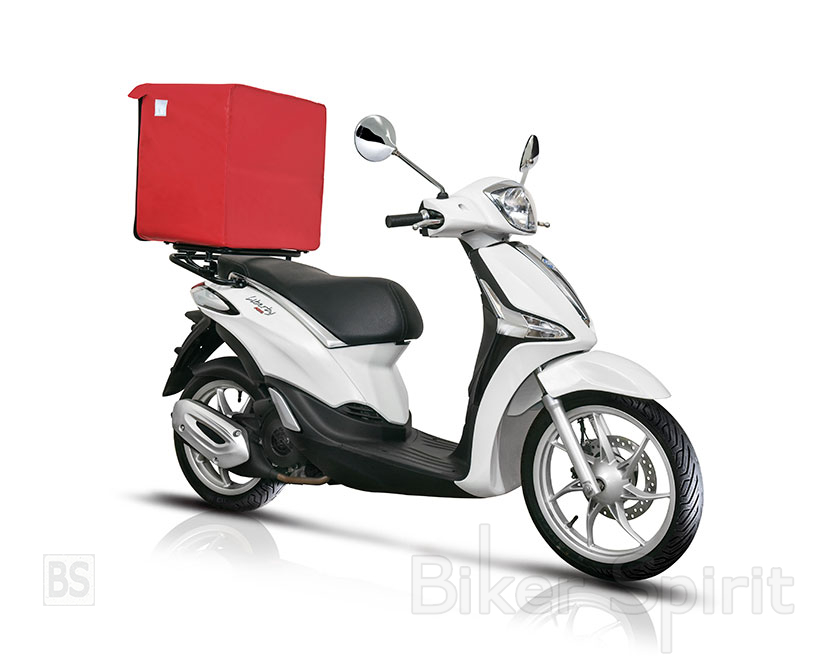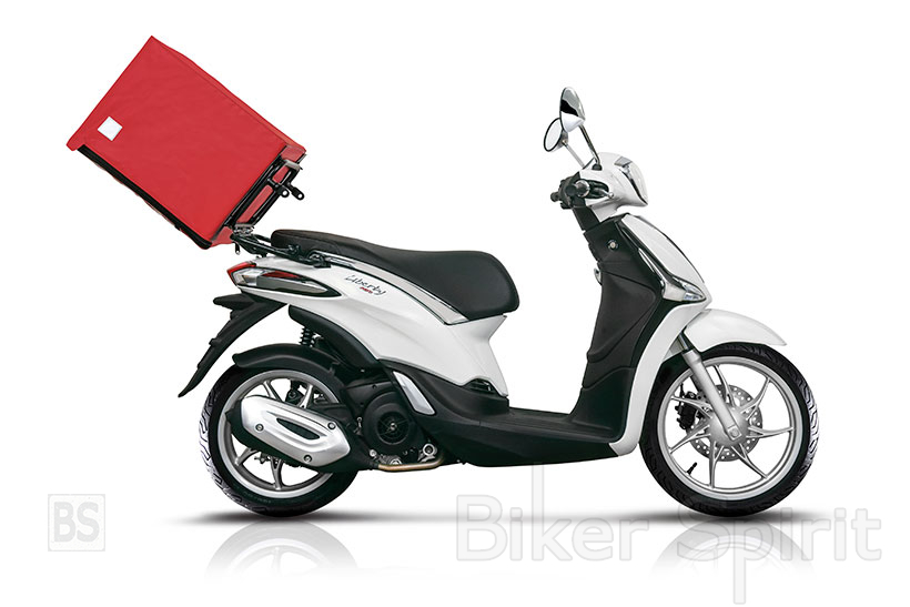 Τώρα ένα νέο αξεσουάρ έρχεται να προστεθεί στην γκάμα προαιρετικού εξοπλισμού του Piaggio Liberty, διευρύνοντας τις δυνατότητες χρήσης του και για υπηρεσίες διανομής με απόλυτη ασφάλεια και ευελιξία. Η πίσω ανατρεπόμενη σχάρα μετατρέπει το Liberty σε όχημα διανομής, καθώς επιτρέπει την ασφαλή στήριξη επαγγελματικών κουτιών. Η τοποθέτηση της σχάρας καταλαμβάνει τμήμα της θέσης συνεπιβάτη, ενώ η σχάρα ανασηκώνεται για το άνοιγμα της σέλας χωρίς να χρειάζεται να αφαιρεθεί το κουτί. Η σχάρα μπορεί να συνδυαστεί και με μία σειρά ειδικά σχεδιασμένων αξεσουάρ Piaggio, όπως κουτιά τροφίμων και βαλίτσες.