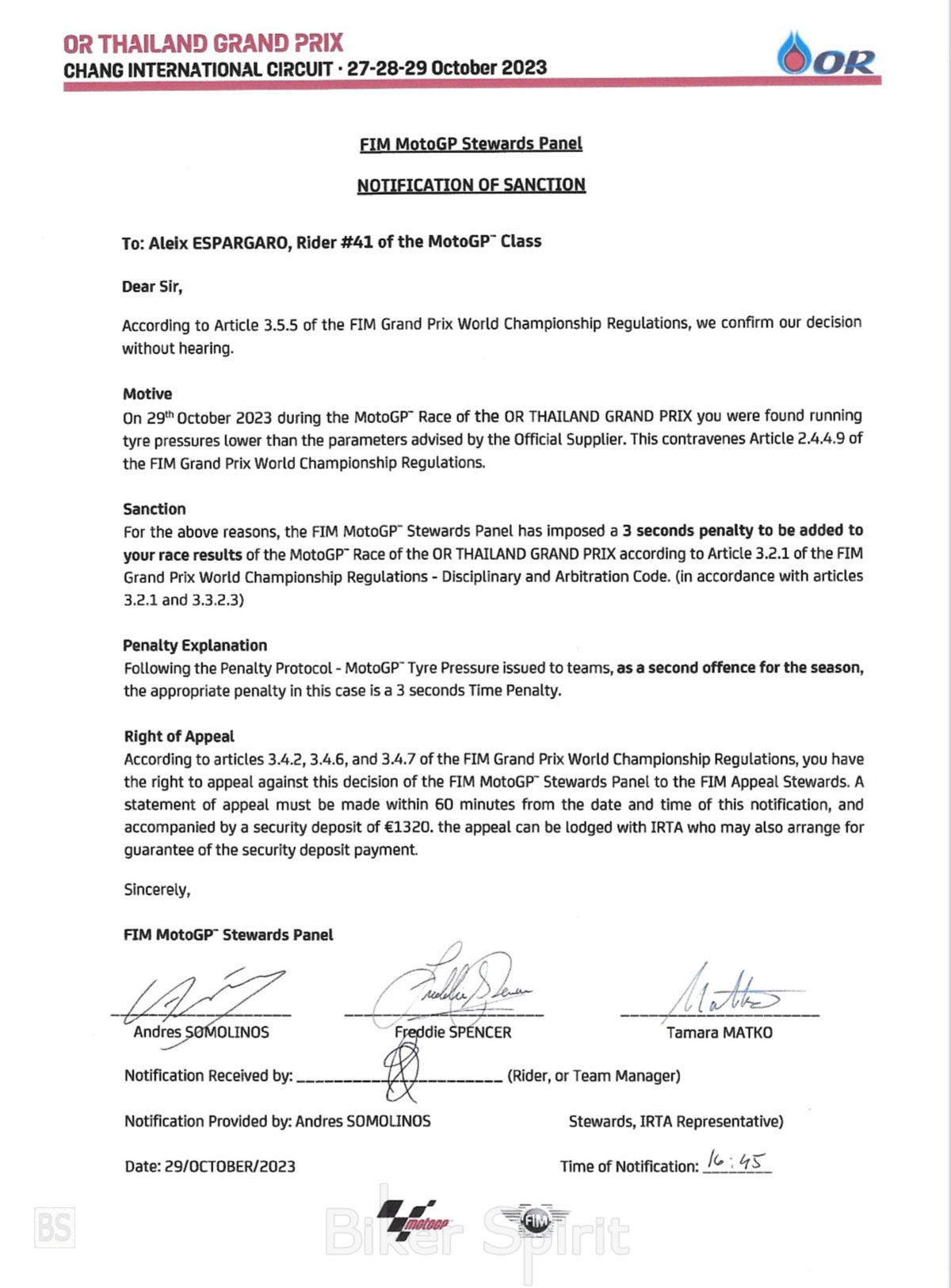 Ο εργοστασιακός αναβάτης της Aprilia, Aleix Espargaro, ήταν ο πρώτος που έλαβε ποινή 3 δευτερολέπτων στο Buriram, βάση των νέων κανονισμών!