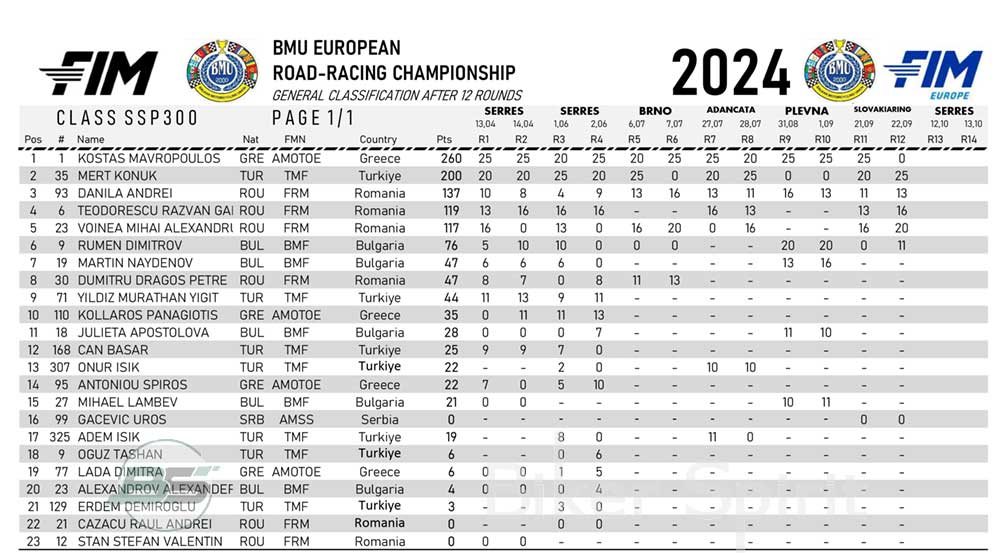 Έτσι ο Κωνσταντίνος Μαυρόπουλος έχοντας 260 βαθμούς, έναντι του Τούρκου MERT KONUK που έχει 200 βαθμούς, κέρδισε τον τρίτο του τίτλο στο BMU.