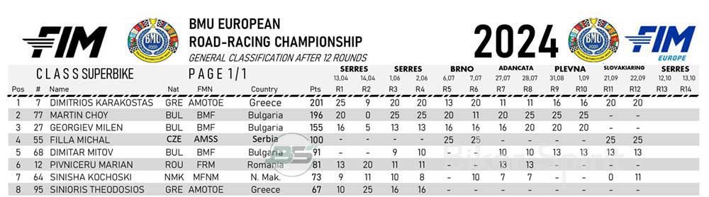 Έτσι μαθηματικά ο τίτλος είναι ανοικτός για όλους εκτός του Σπύρου Αντώνιου που στα δοκιμαστικά της Τετάρτης είχε μια πτώση με αποτέλεσμα να χτυπήσει τον ώμο του, με αποτέλεσμα να πάθει βαριά θλάση δελτοειδούς και να χάσει τον διπλό αγώνα του ΠΠΤ και του BMU. Ευχόμαστε γρήγορα περαστικά και πάλι στην πίστα γρήγορα!