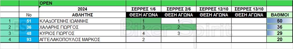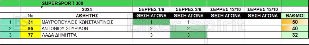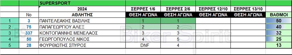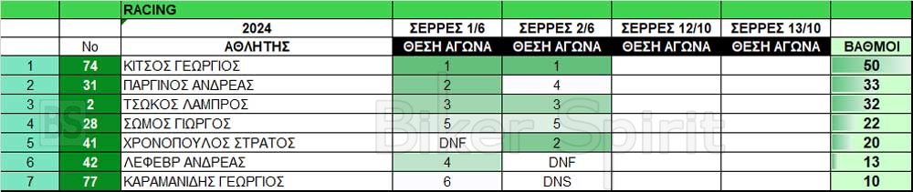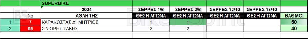 ΒΑΘΜΟΛΟΓΙΑ Πανελληνίου Πρωταθλήματος Ταχύτητας Μοτοσυκλέτας 2024