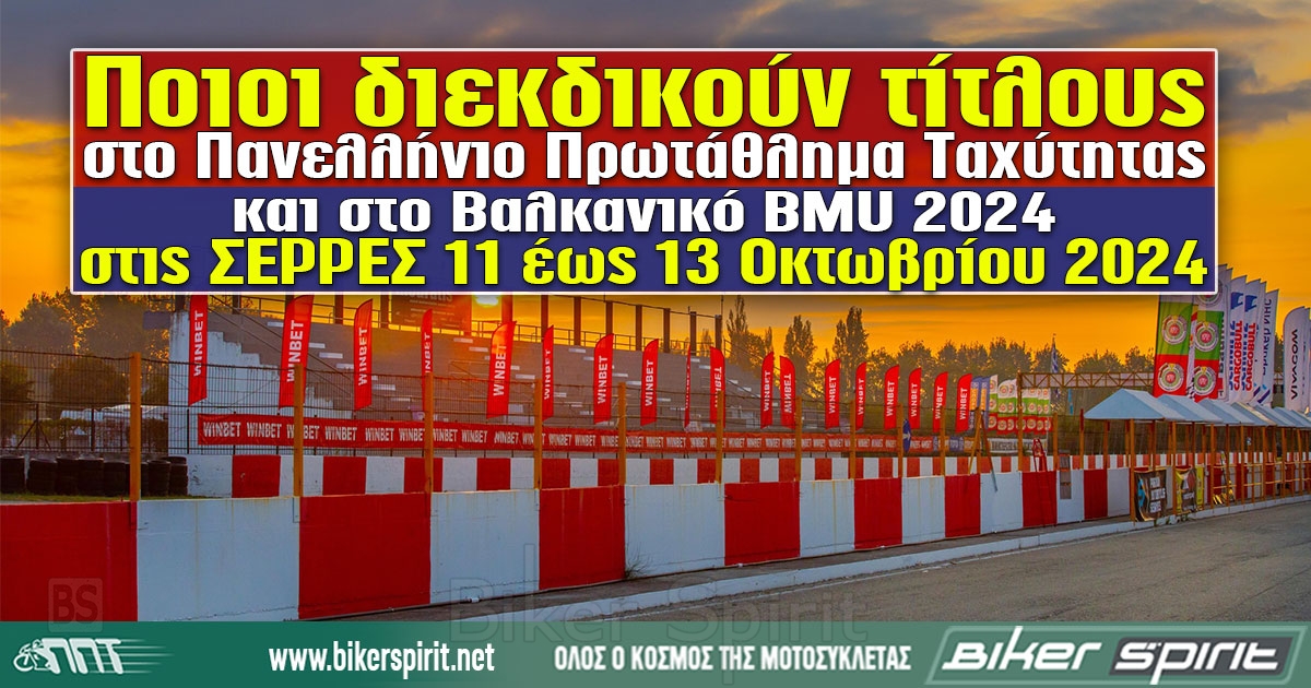 Ποιοι διεκδικούν τους τίτλους στο Πανελλήνιο Πρωτάθλημα Ταχύτητας και στο Βαλκανικό BMU 2024 στις ΣΕΡΡΕΣ 11 έως 13 Οκτωβρίου 2024