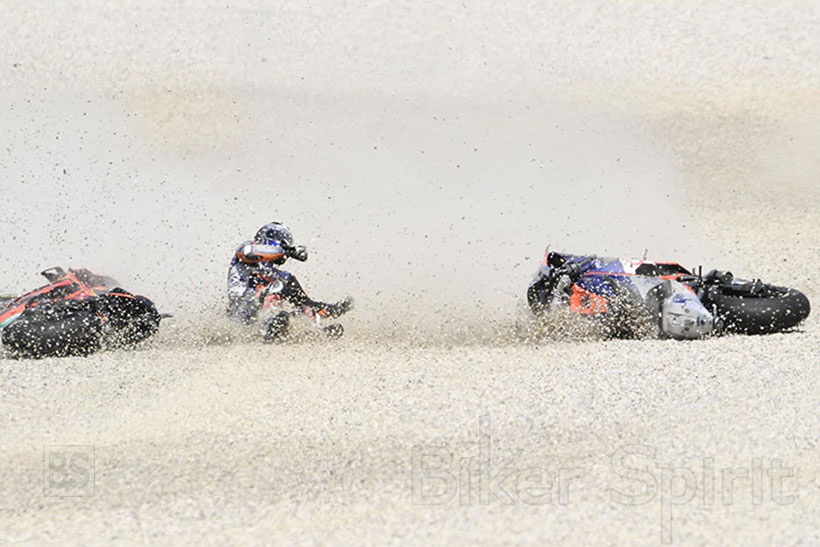 Ο εργοστασιακός αναβάτης, Pol Espargaro δεν τα κατάφερε και επιπλέον ενεπλάκη σε μια πτώση με έναν ακόμη αναβατή της ΚΤΜ, τον Miguel Oliveira.