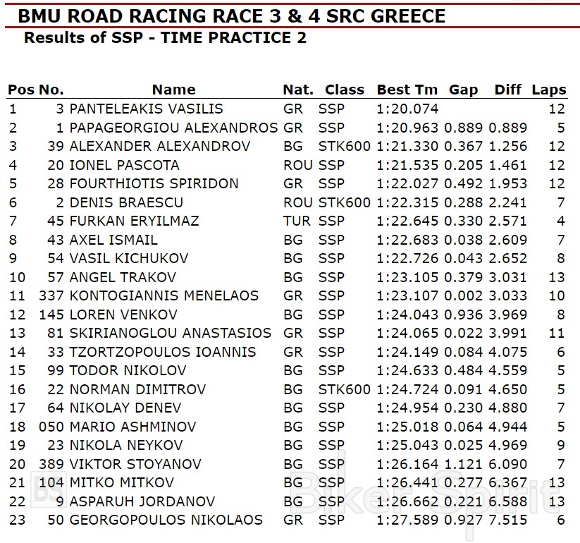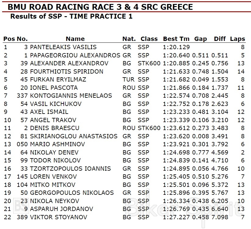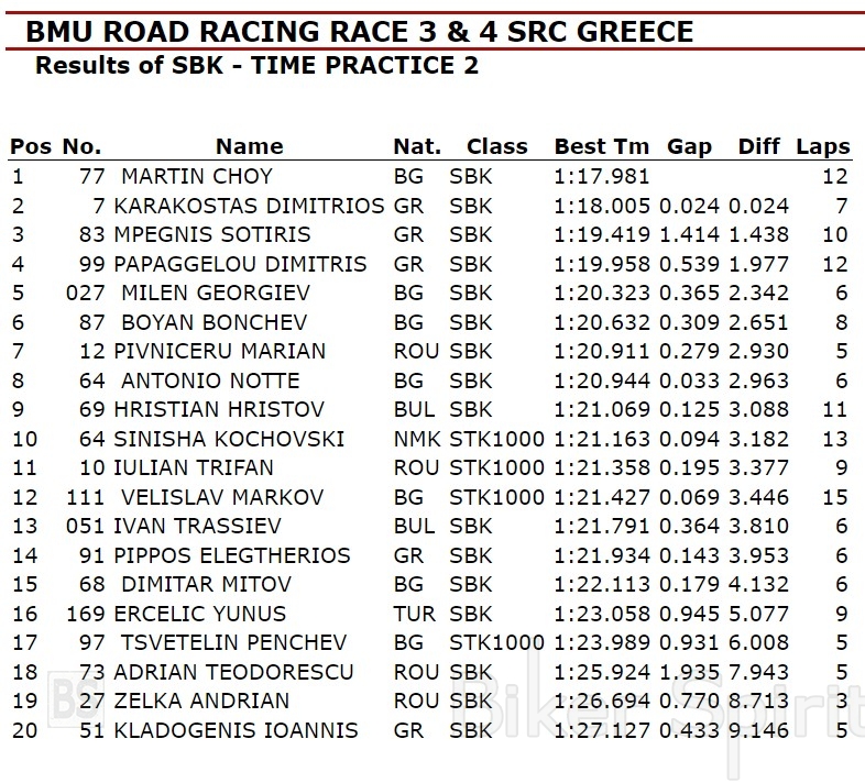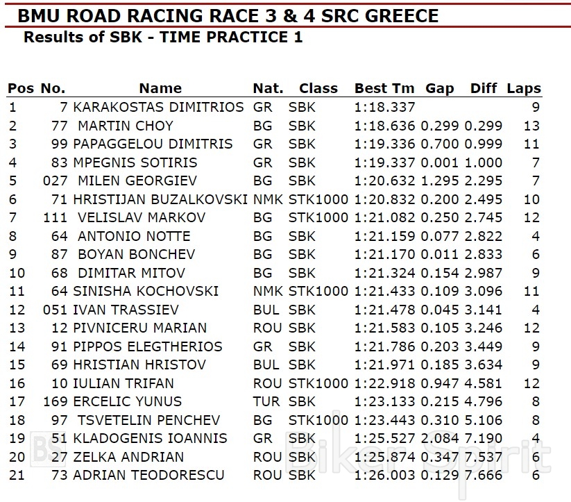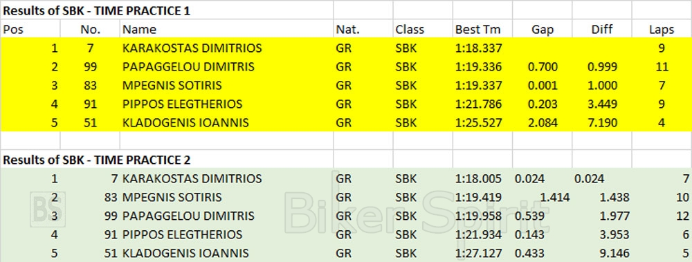 ΑΠΟΤΕΛΕΣΜΑΤΑ ΧΡΟΝΟΜΕΤΡΗΜΕΝΩΝ SBK