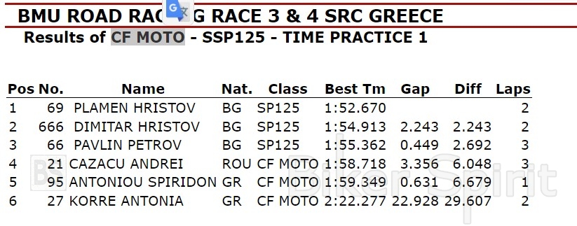 ΑΠΟΤΕΛΕΣΜΑΤΑ ΧΡΟΝΟΜΕΡΤΡΗΜΕΝΩΝ CFMOTO