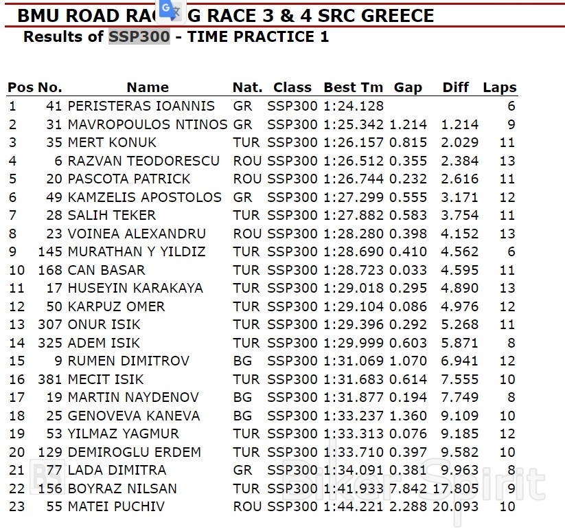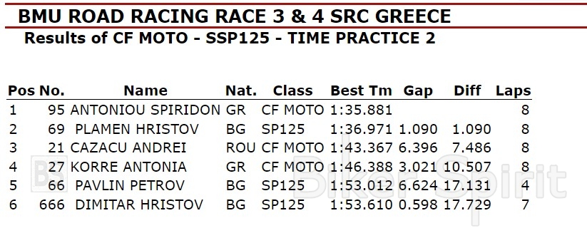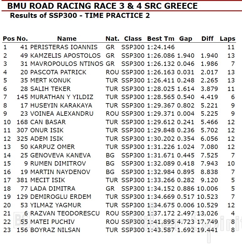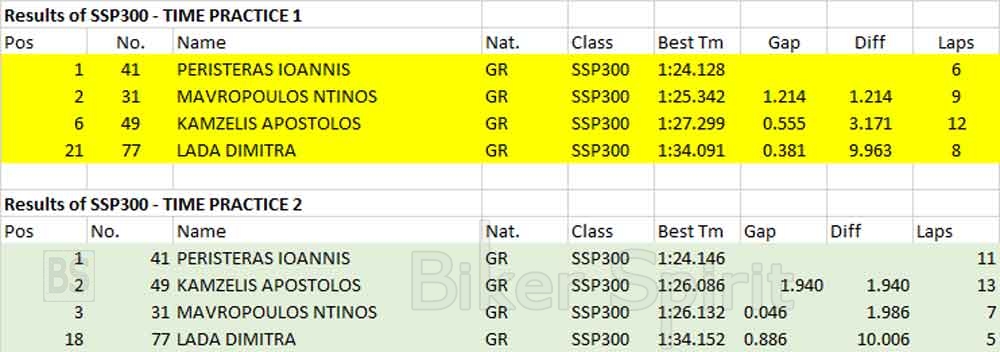 Την pole position στην κατηγορία Supersport300, κέρδισε ο Γιάννης Περιστεράς, με χρόνο 1:24.128, που είναι και ρεκόρ της κατηγορίας, για την πίστα των Σερρών!