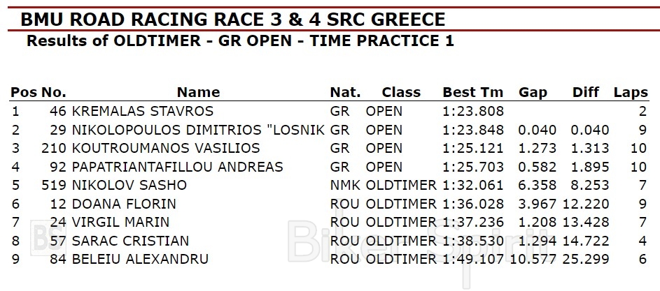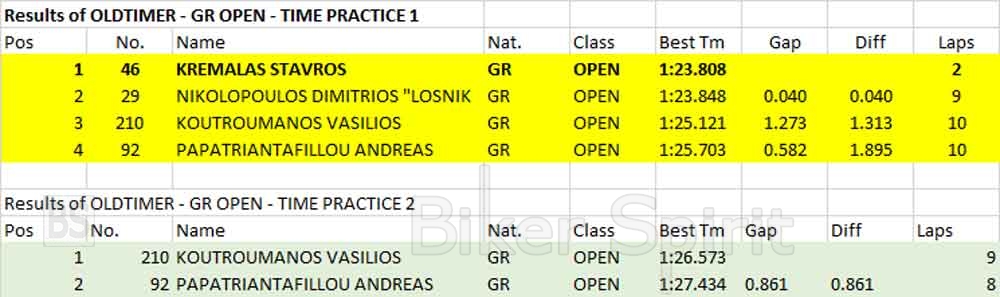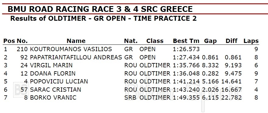 Ο Σταύρος Κρεμάλας, με χρόνο 1:23.808, κέρδισε την pole position στην κατηγορία, μπροστά από τους Δημήτρη Νικολόπουλο, Βασίλη Κουτρουμάνο, και Ανδρέα Παπατριανταφύλλου.