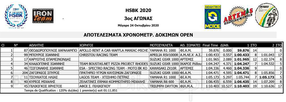 Από την δεύτερη σειρά και την 4η θέση θα ξεκινήσει ο Γιώργος Μαρκεσίνης, που επανεμφανίζεται μετα από απουσία ενός χρόνου, μπροστά από τον Δημήτρη Βάμβα και τον Στέφανο Δέσκα, περυσινό κυπελλούχο της Open που κλείνει και την σχάρα εκκίνησης!